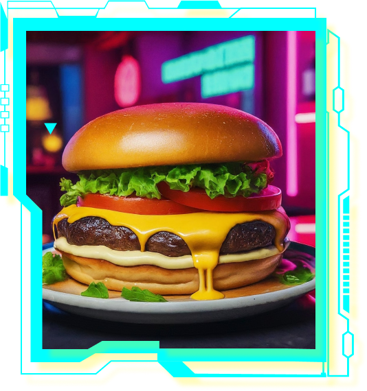 Love stir-fry noodles or just chinese food in general? Overclock bar as a wide selection of pan-fried noodles for all your noodly dreams. Burger type of person? No problem. American as you can get, with a futuristic twist. Lead competitor to any bar cheeseburger. Can't be a bar without a couple drinks! Try out the signature Neon-Colada, and many more glowing drinks to amplify your upgrade with us.