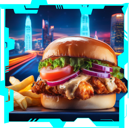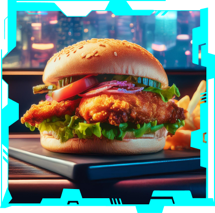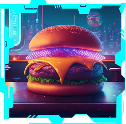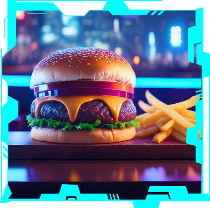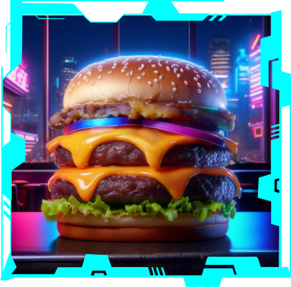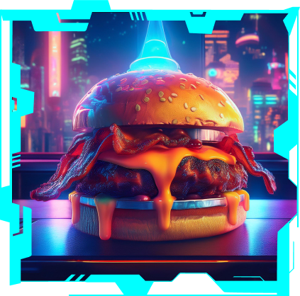 Triple-tron is no joke. One bite and your stomach receptors might go off as full. Be careful, as flavortown in this dystopian world never looked this good, choom.