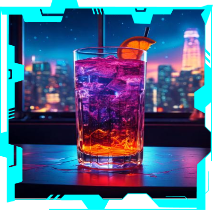 Infused with your biochip is flavor too connected to you. A mysterious blend of dark rum and fresh lime, creating an enigmatic cocktail that leaves you wanting more.