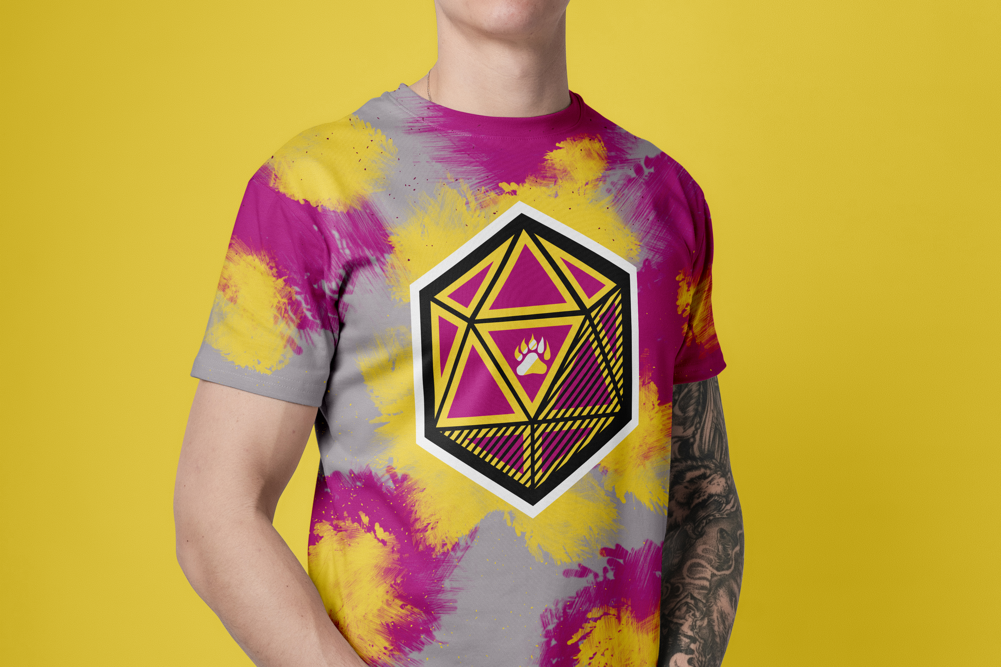 Our main symbol, the bold D20. Show up in style with this icon shirt, with paint styles and our golden symbol!